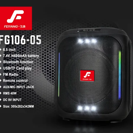 Bluetooth/USB/TF/FM/REC/Remote control/7.4V/4400mAh battery/AUX/MIC Input jack/DC 9V/RMS:40W