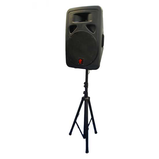 Highlighted is a professional speaker for stage and event use. The precision structure ensures excellent sound quality. A foldable stand is added at bottom to suit for the needs in different settings.