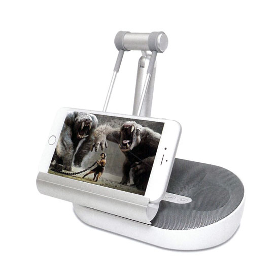 This is a speaker lamp featuring an iPad stand for added utility. It can deliver bright illumination and offer excellent sound effects. This lamp pairs with different kinds of mobile devices via Bluetooth.