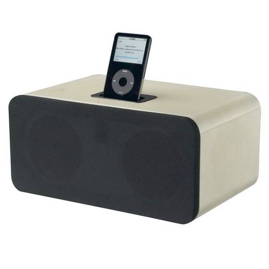This is a 2.0 wireless powered speaker system for iPod. It can be connected to the TV for viewing video and movie files. The IR receiver can receive the instruction from remote control.