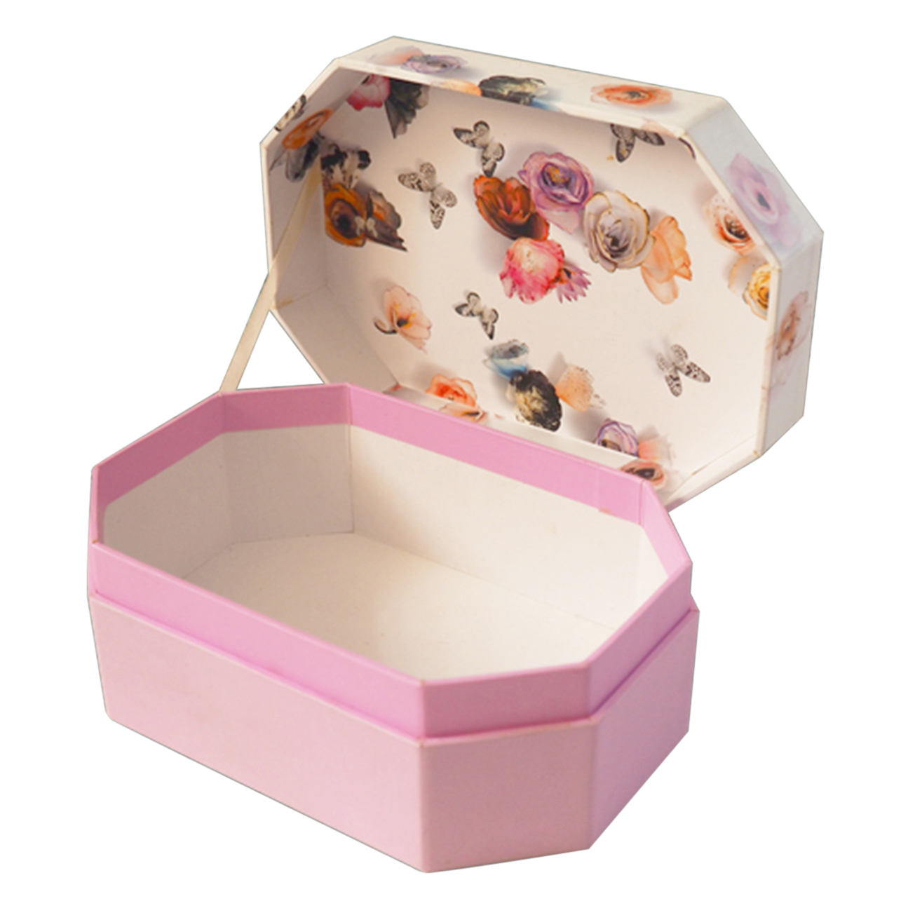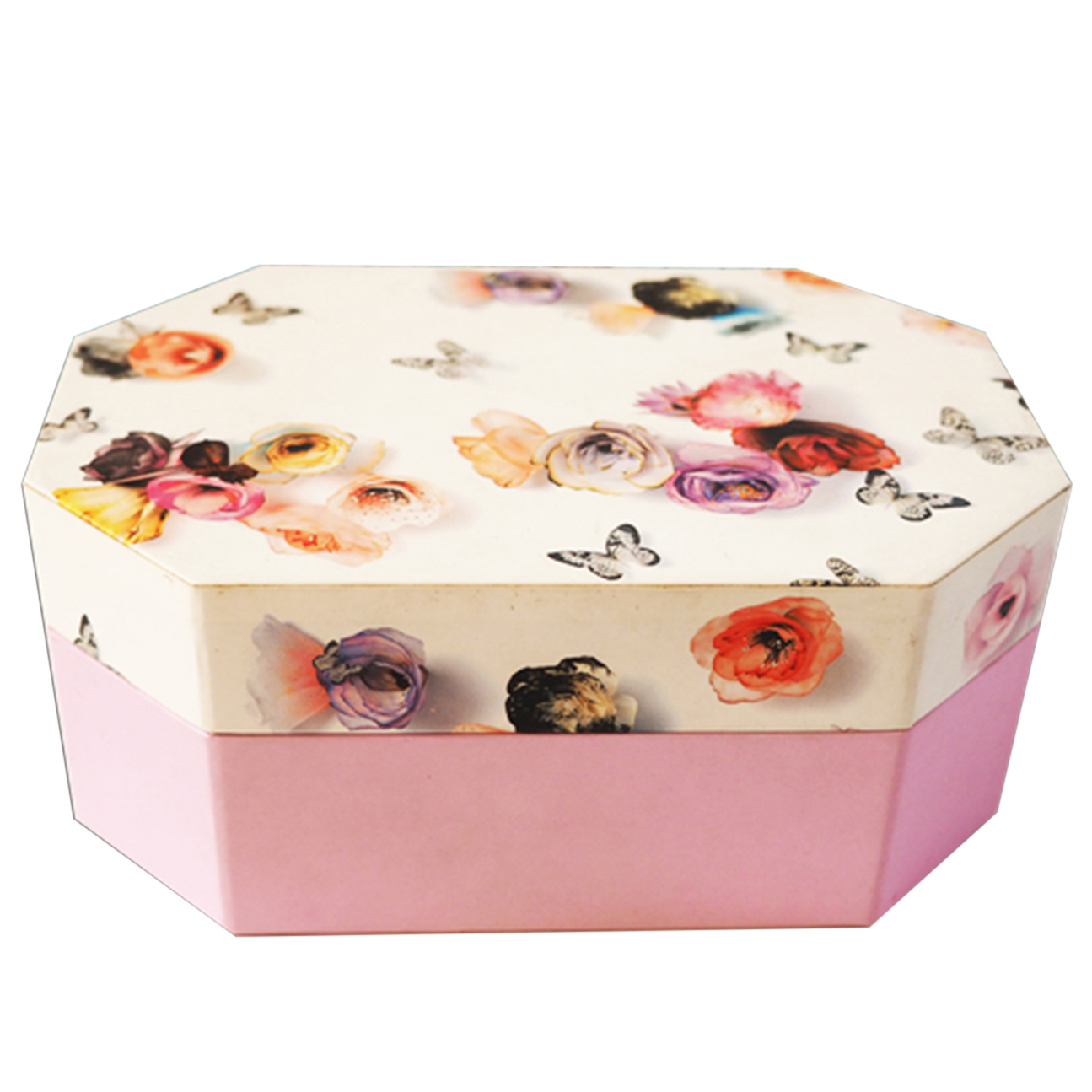 This paper gift box takes on a unique hexagonal convey, basks in two-tone for added appeal. The fancy pattern print on top further catches eyes in effortless demeanor. According to the customer specific requirements for the design and production of various kinds of jewelry, cosmetics, workers Arts, candy food, handicrafts and other gifts package.