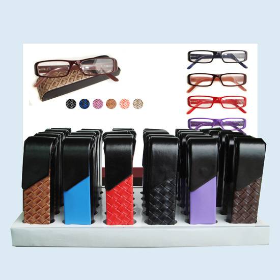 These are spectacle cases made of imitation leather. The spectacle cases are decorated with woven designs.