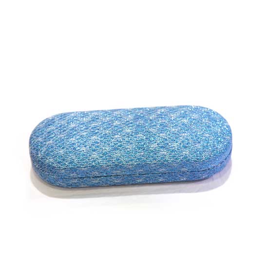 This is a spectacle case that comes in a sparkling style. Featuring a convenient closure, the case is made of metal for durability. The surface is finished with leather for a comfortable touch.