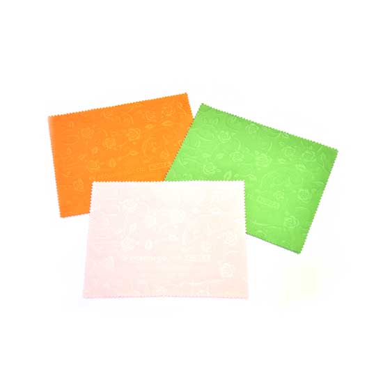 The highlighted cleaning cloth is ideal for cleaning spectacle lenses. Made of top-grade microfiber, it can remove fingerprints, dirt and smudges without scratching. This displayed spectacle cleaning cloth is washable and can be reused for many times.