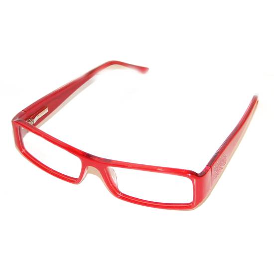 This is a spectacle frame for women. The thick frame which is made of acetate, has a sharp-red coating which gives a ruddy appearance for the female wearer.