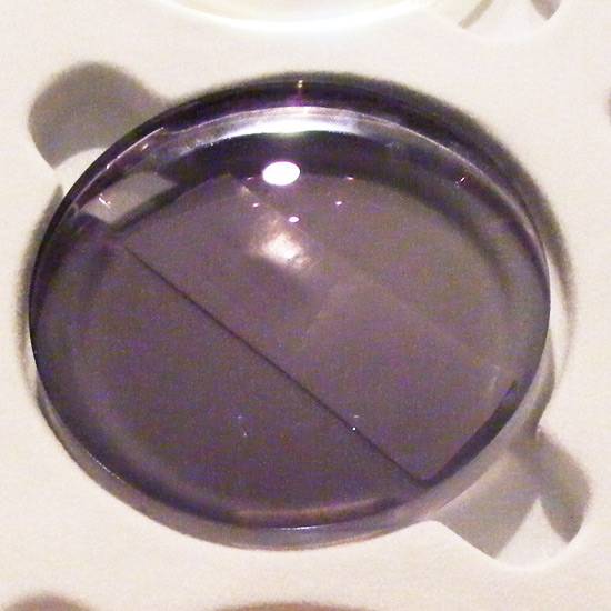 Spectacle lens that turns dark grey when exposed to bright light source such as the sun. Protects the eye from bright rays. Round in shape and can be worn indoor or outdoor.