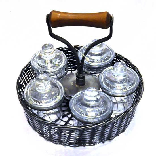 This spice jar set comes with 5 top-quality glass jars. The circular basket holds the items sturdily and serves as an excellent decoration. The metal and wooden handle is carefully made for a comfortable grip.