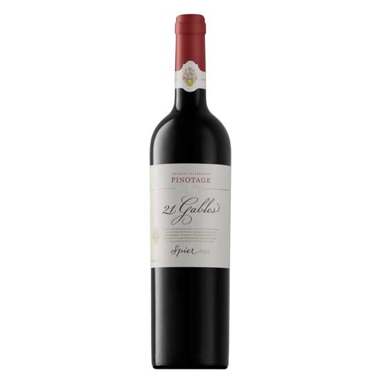 Displayed is a bottle of Pinotage that originates from South Africa. Made from high quality grapes and oaked for two years, this red wine shows a rich nose with hints of fruit and wood. This table wine is ideal for red meat dishes and stews.