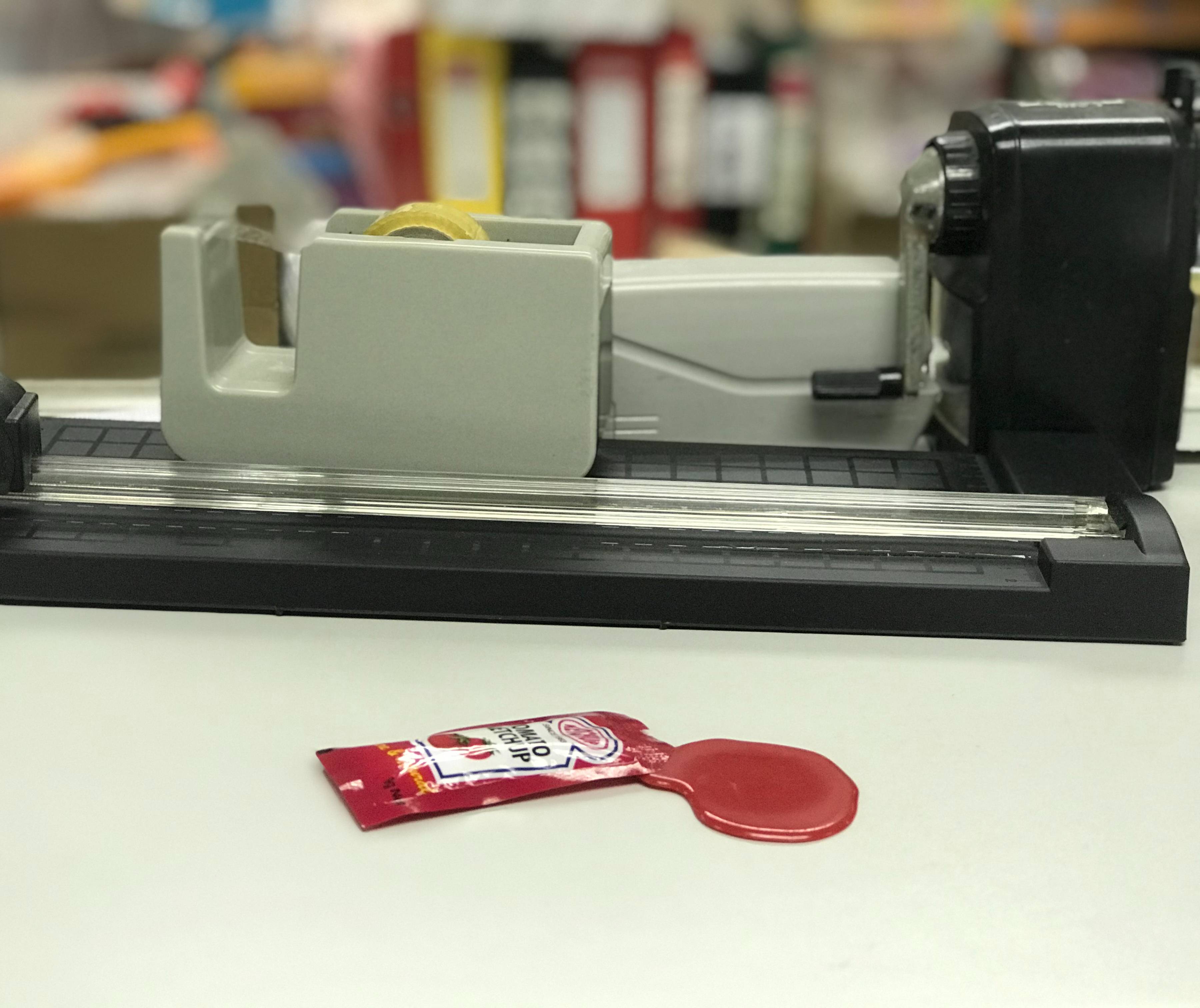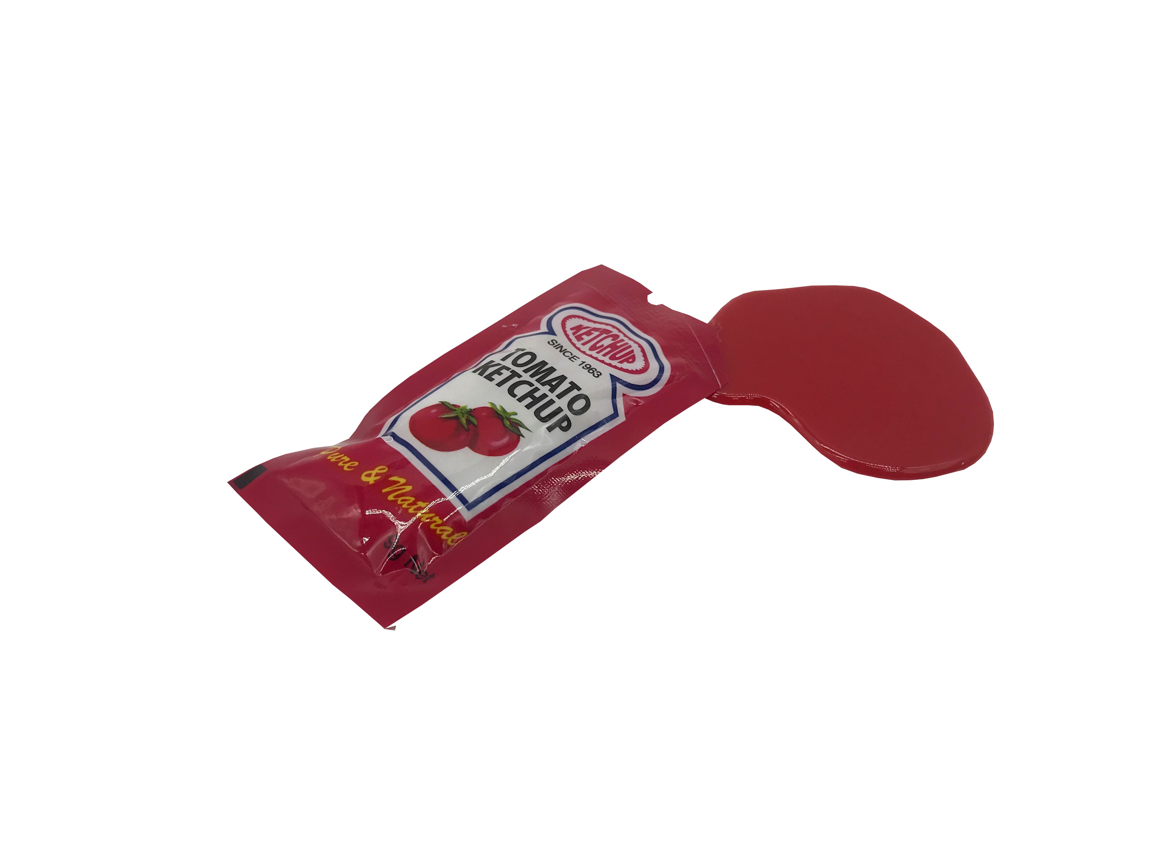 Put it on anywhere you like. People will find the ketchup is spilled out.