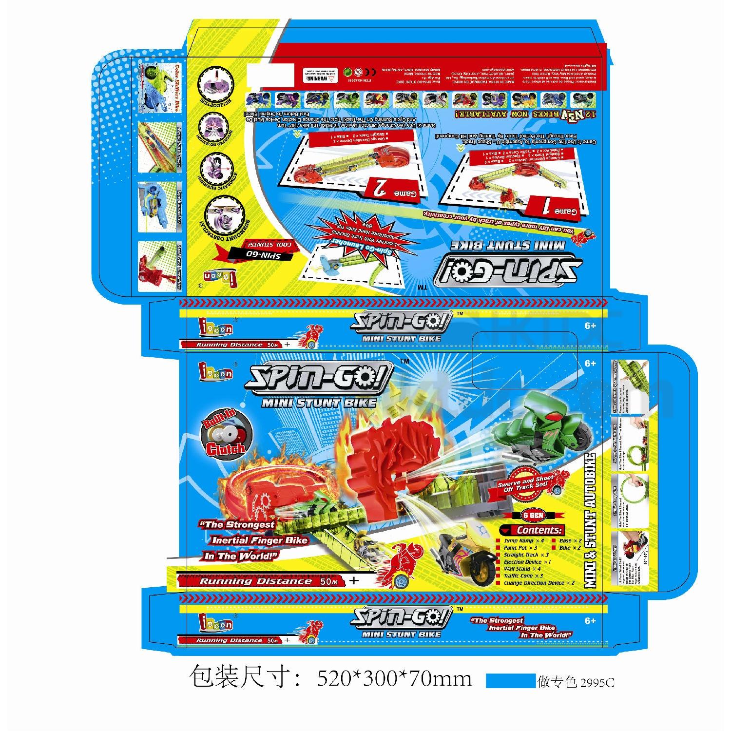 Spin-Go is friction bike without battery. Its running distance can reach 70 Meters! It has four stunt plays: surmount obstacle, acrobatic running, inverted rotation and helicopter on pen.