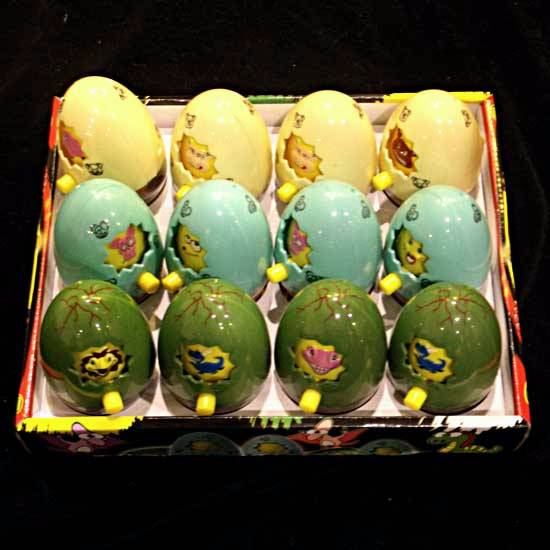 These spinning eggs are fun little toys for children. Different animals are shown in the crack when the button is pressed. The toys come in three colors and are safe for children to play with as they are round-shaped.