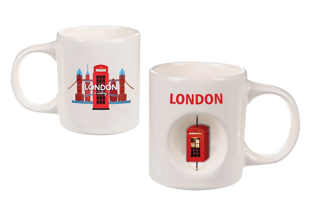 • 300ml Ceramic mug with rotating 3D object in front of it.