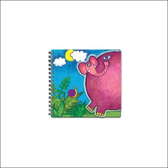 • A colourful picture with an elephant and snail is painted on the cover of the sketch book.