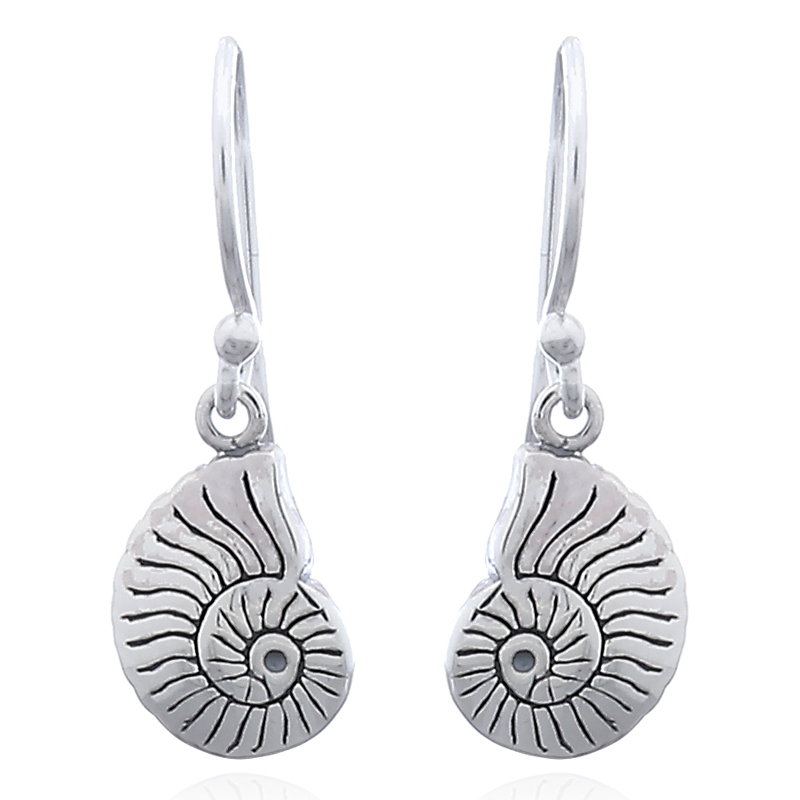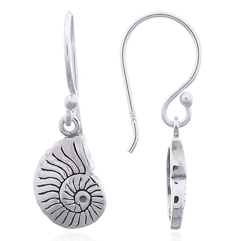 Spiral Shark Eye Shell Silver 925 Dangle Earrings