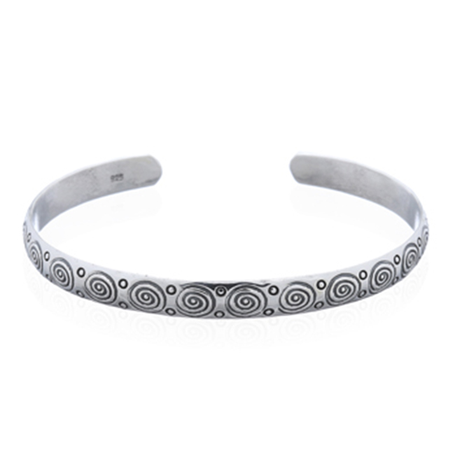 Spirals In A Line Of Sterling Convex Silver Bangles