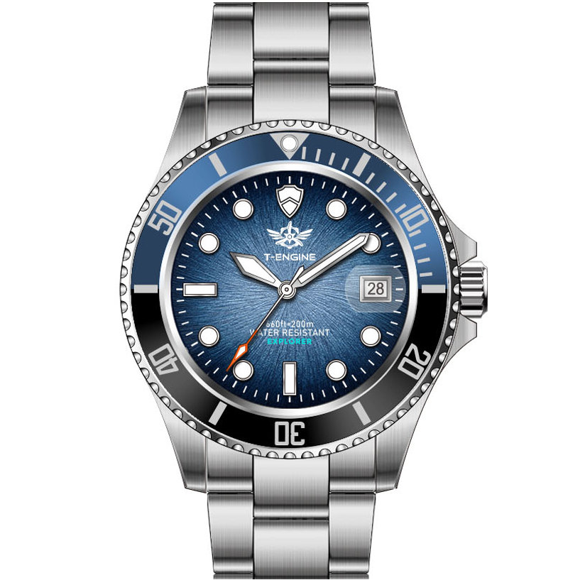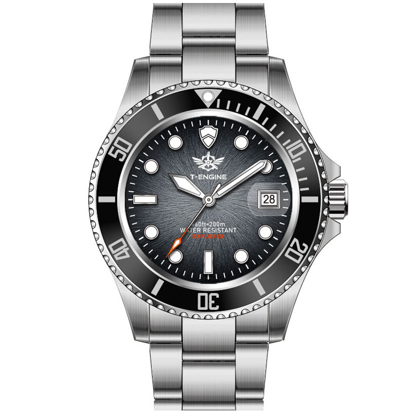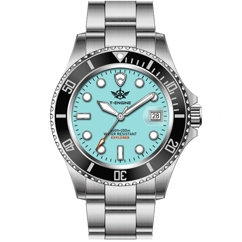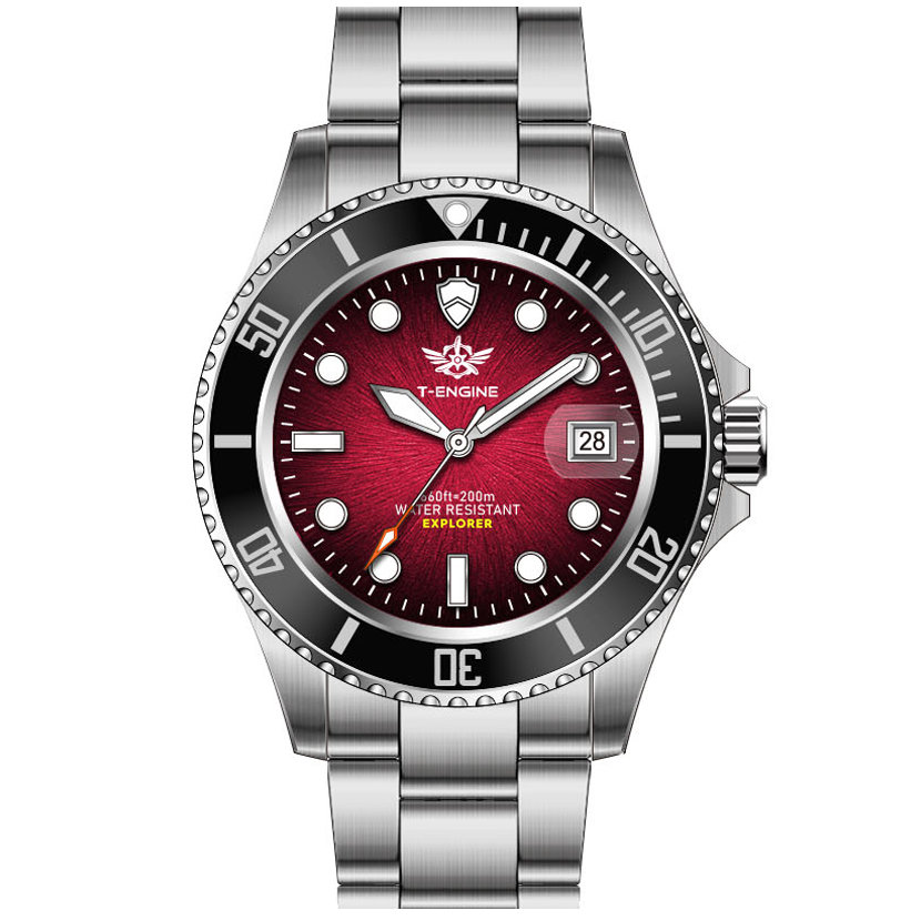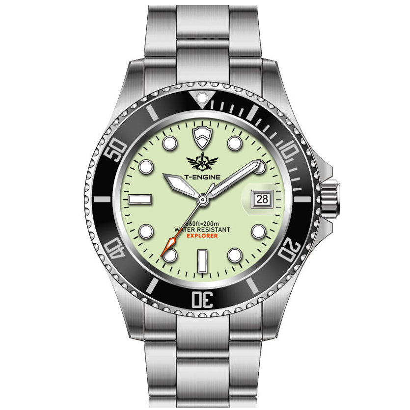 • Matte printed dial, Applied indexes filled with luminous /