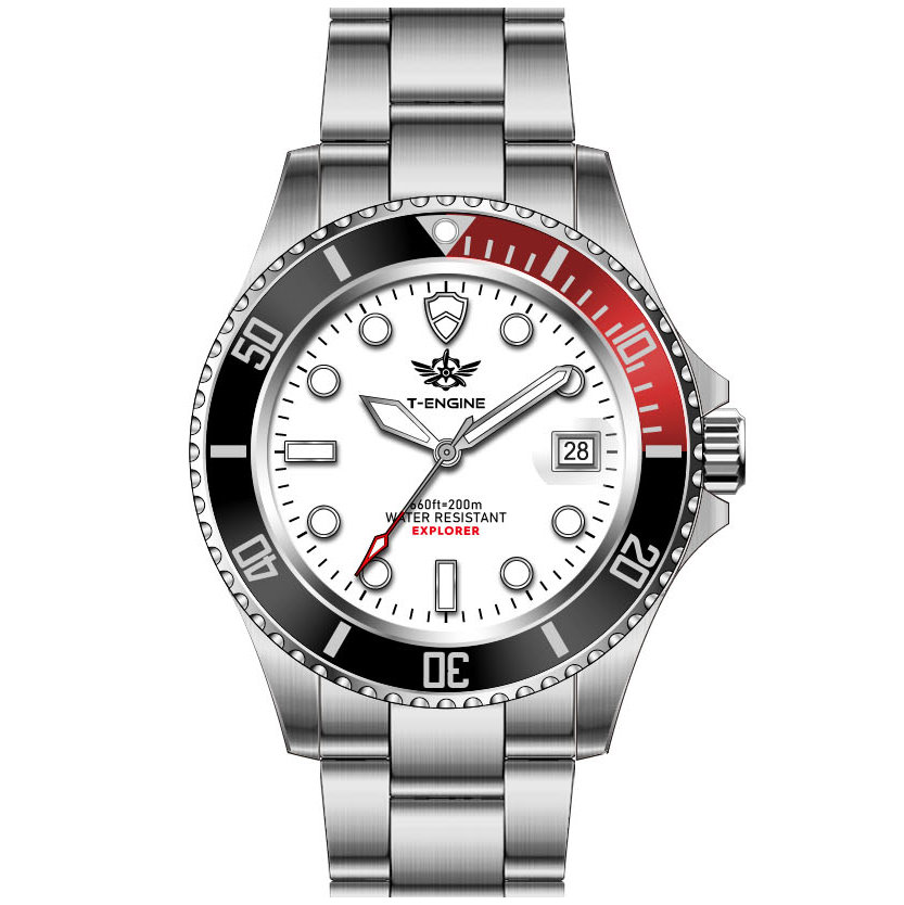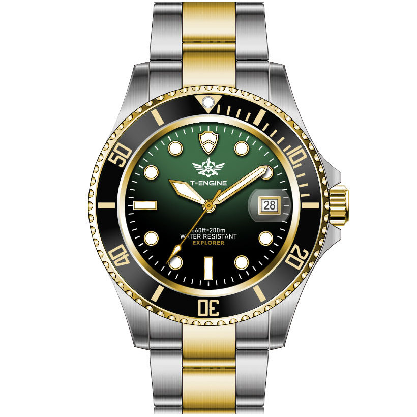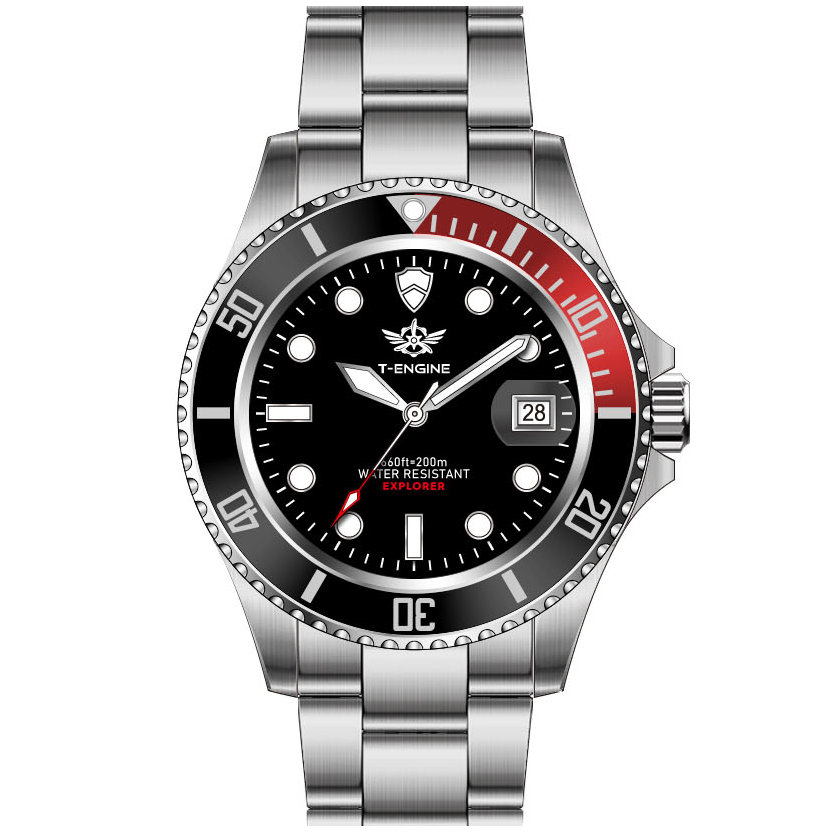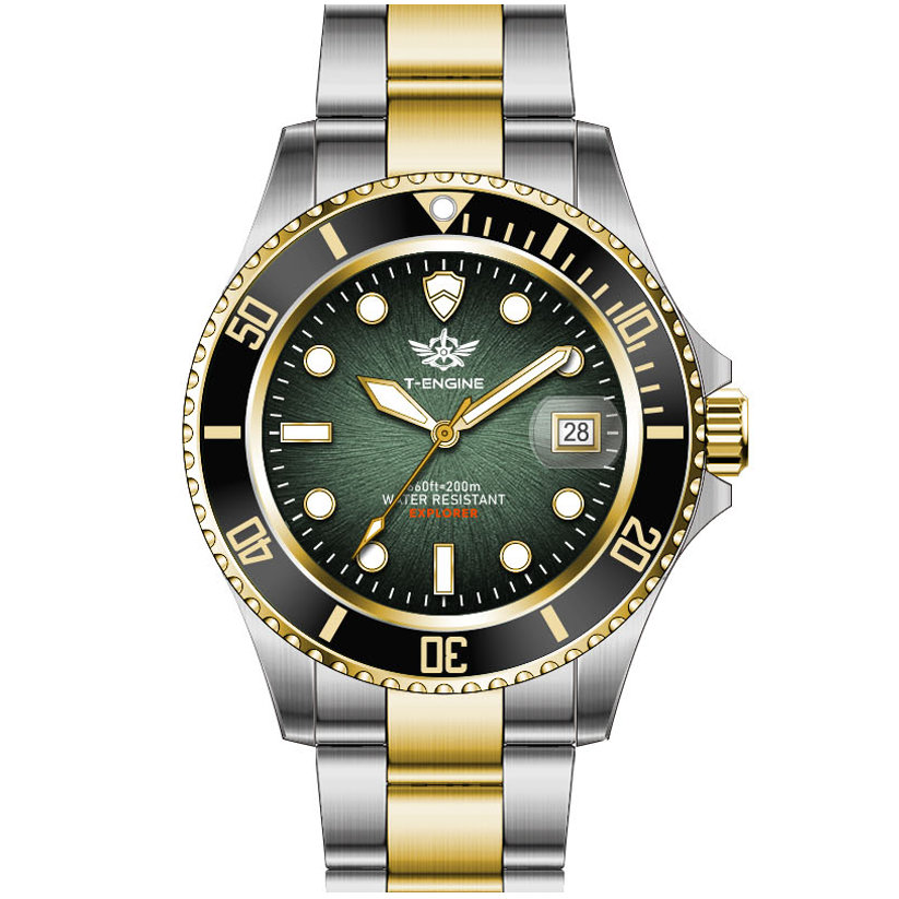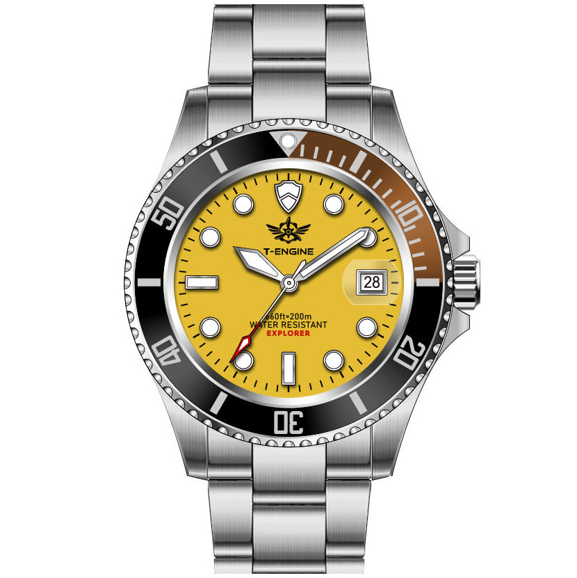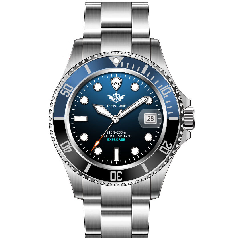 • Matte printed dial, Applied indexes filled with luminous /