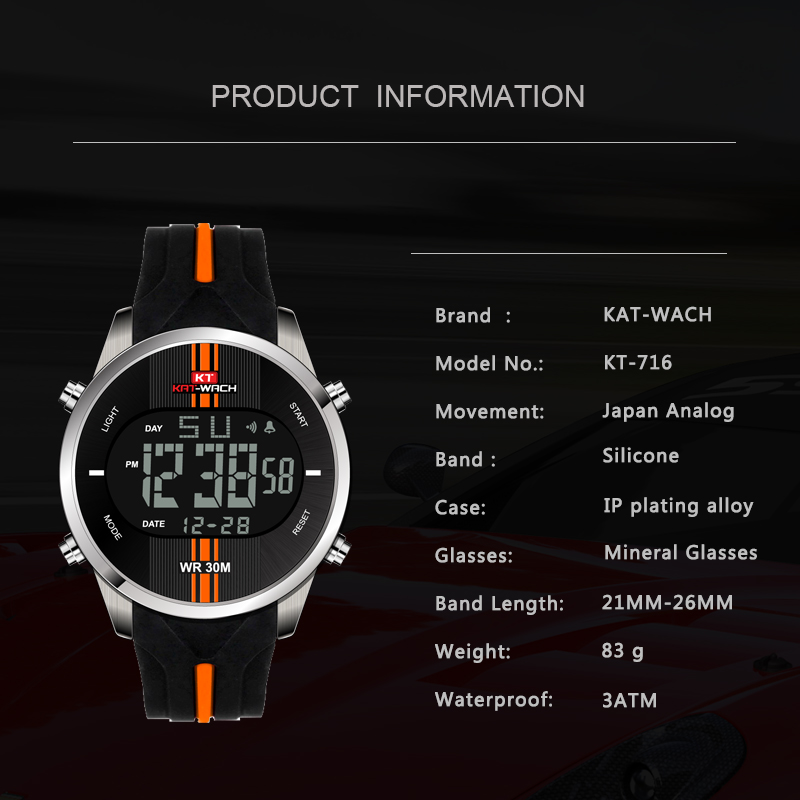 ADVANCED MANUFACTURING TECHNOLOGY:Original Japanese time module quartz movement,real stainless steel buckle and back case,comfortable Silicone watch band,a perfect watch for outdoor sport lover.