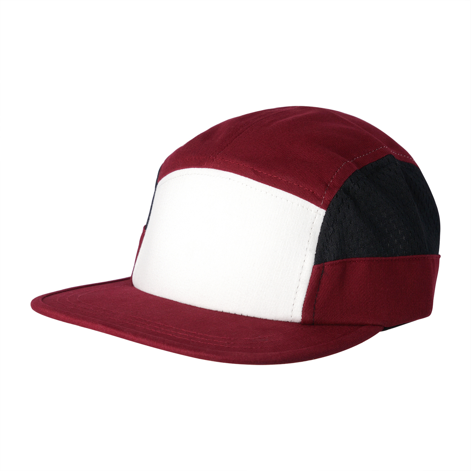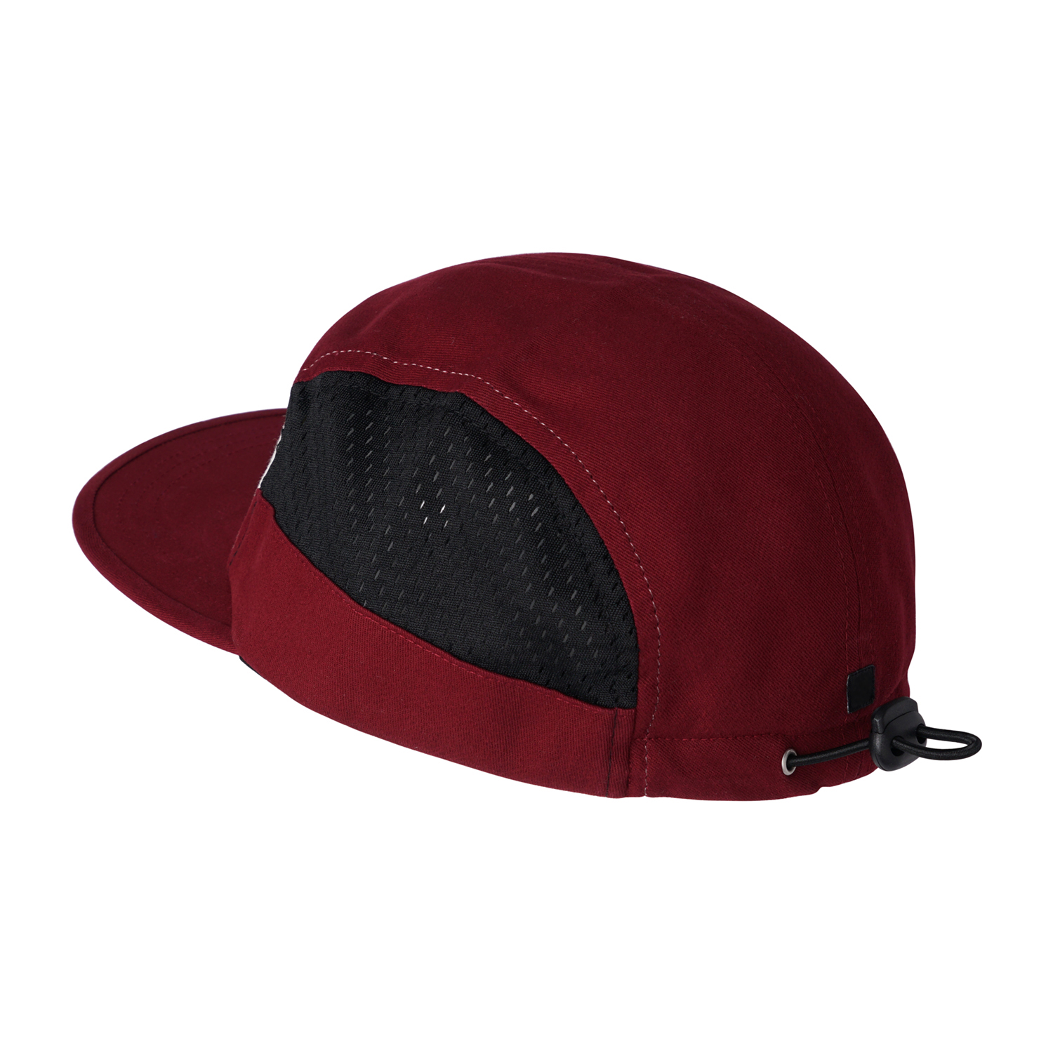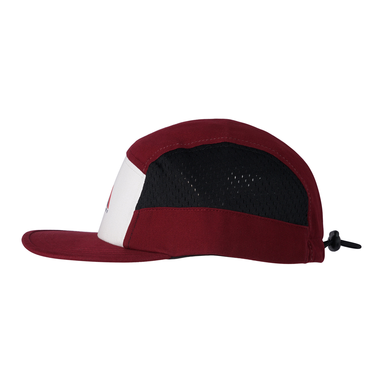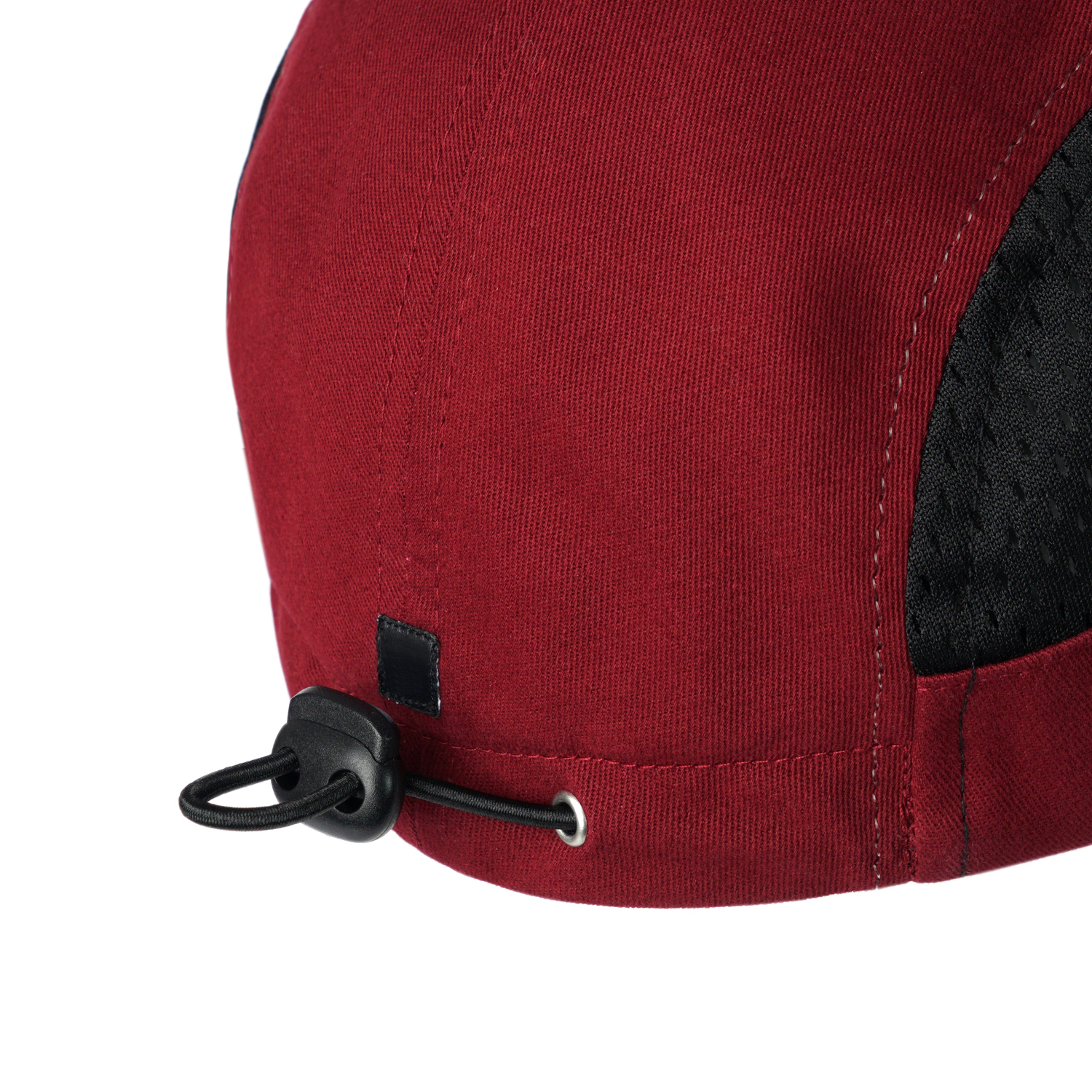 This sports cap is made of five panels seamless fabric, with white and red contrasting colours. The black mesh fabric on the side panels helps to provide breathability, allowing the circulation of air to cool down and get rid of sweat quickly. It features an adjustable clasp on the back. It is suitable for outdoor activities and sports.