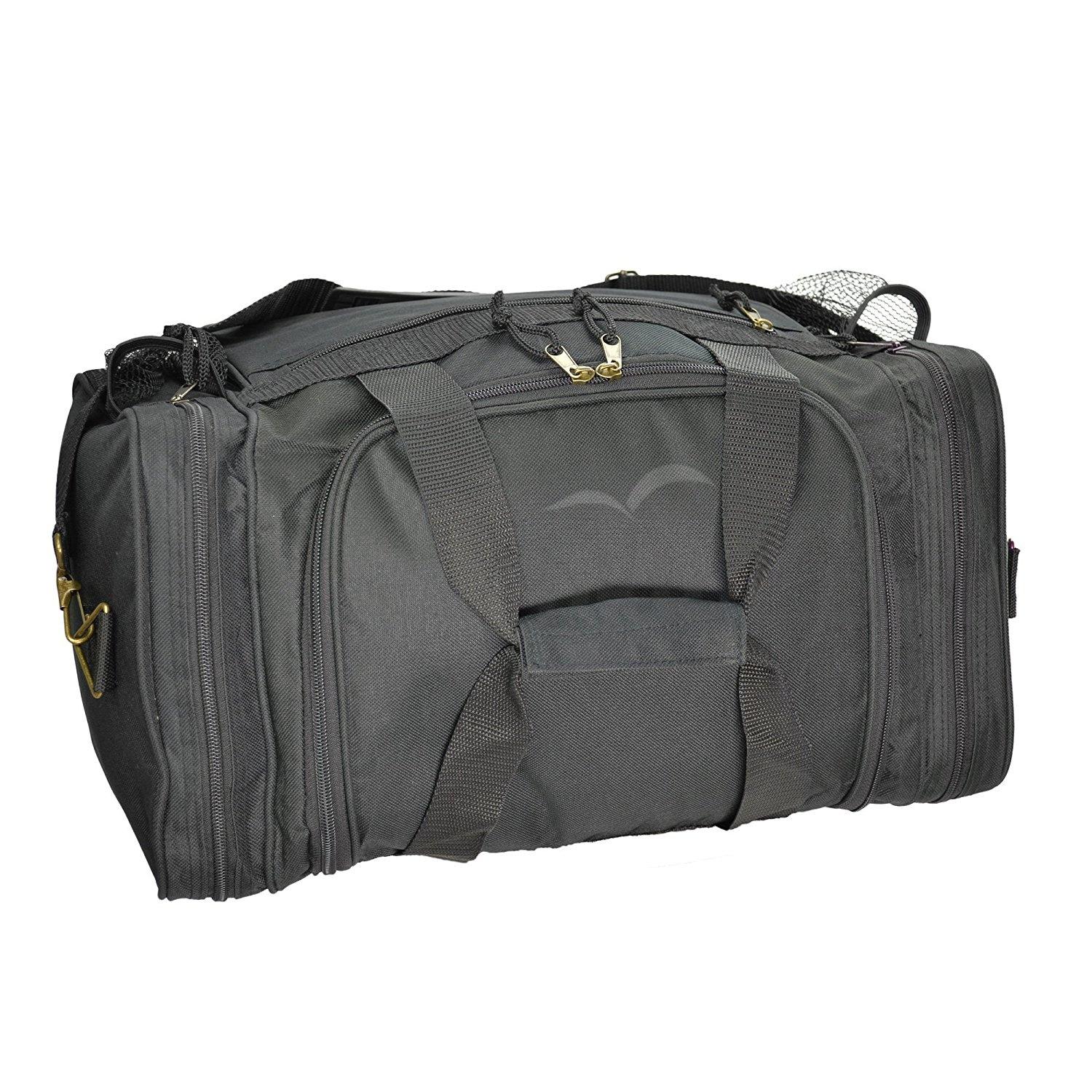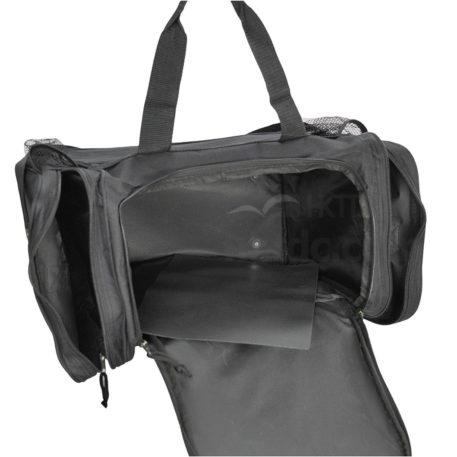 • A stylish sports duffel bag with a special side pocket for shoes or wet gear, Extra spacious main compartment with zippered clamshell opening