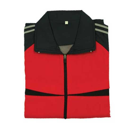 Shown here is a tracksuit jacket designed in a bright red for a sportier image on you. The jacket features a zipped front and a mock-neck design. Customized printings can be made on the jacket for styling or promotional purposes.