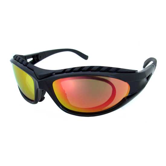 This pair of sports sunglasses showcases a sturdy construction. The wrap-around style provides the best vision. The thick tapered temples minimize light penetration from the sides. The sunglasses make essential partners of sports players.