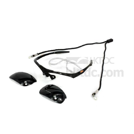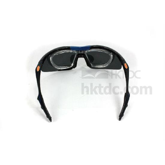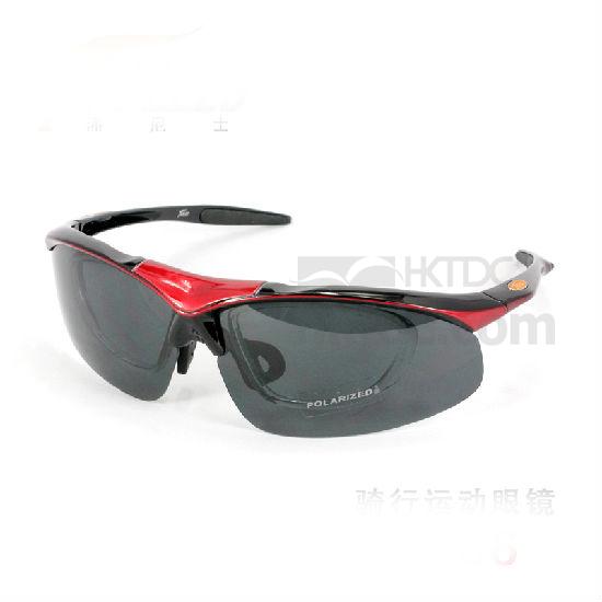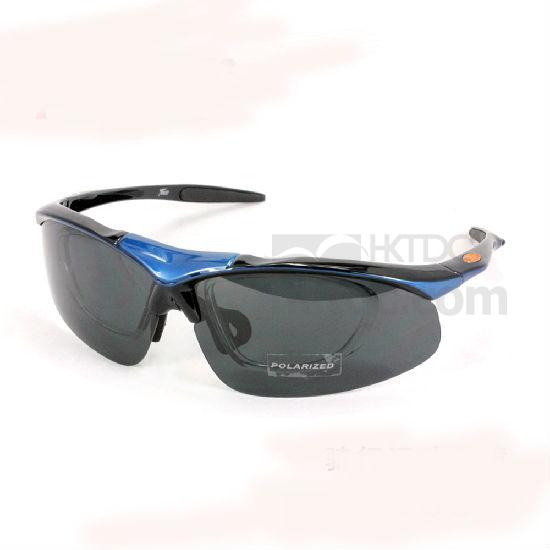 Featured is a pair of sports sunglasses designed with polarized lenses. They offer reliable protection against UV radiation. The materials chosen demonstrate superior scratch resistance for exceptional durability.