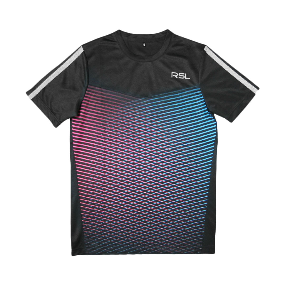 Enjoy sports in style and comfort with this sports T-shirt. It is made of moisture wicking fabric and has short sleeves with a crew neck. This T-shirt is embellished with two color screen printing in front and has reflective logo prints and stripes on the sleeves.