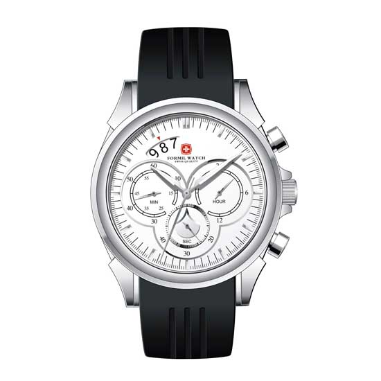 This sports watch comes with a stainless steel watch case and a silicone watch band. It boasts 10 ATM water resistance for added functionality. The accurate markers, three sub-dials and three watch hands complete this functional sports watch.