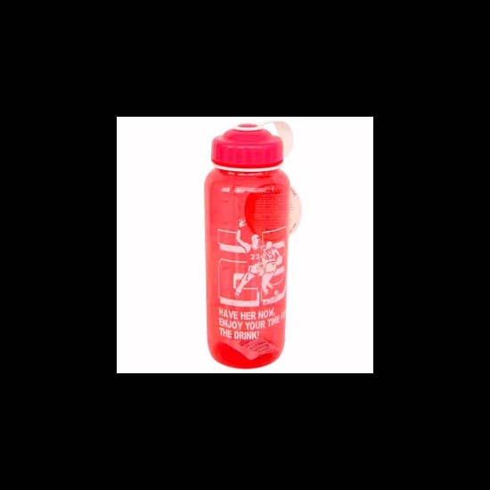 • A pink translucent sports water bottle which is made of PC or PP plastic
