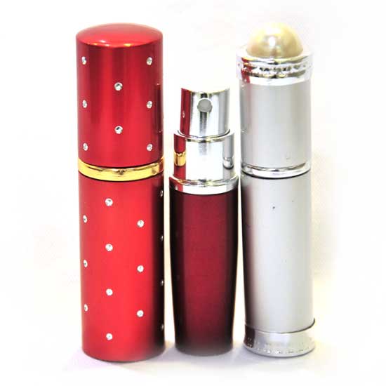 This spray bottle set flaunts a cute-looking appearance of a red, cylindrical case adorned with silver dots. Equipped with a spray bottle and a roll-on bottle, this spray bottle set accommodates your different needs. This spray bottle set provides ideal storage for your perfume or deodorant during travel.