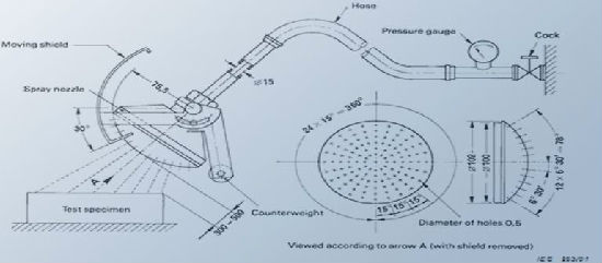 Determine the water resistance of products checking them against jets of water with this professional device. The degrees of housing protection is demonstrated with second characteristic numerals such as grade 3 “protected against spraying water” and grade 4 “protected against splashing water”, in accordance with IEC60529 figure 5, IEC60335 clause 15.1.1, IEC60598.