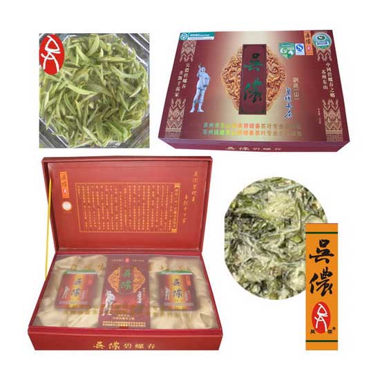 The spring snail tea features savory, robust and curled green white leaves. Spring buds are picked early for their tenderness. In Suzhou, the tea masters drop the baby shoots into water that is hot but well below boiling to coax the delicate flavor from the precious leaves.