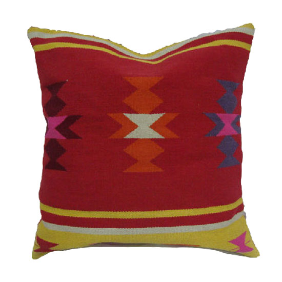 This is a square cushion with extra-soft fillings. Its cover comes in red with colorful patterns for added style. This cushion will bring a bit of color to your home décor.