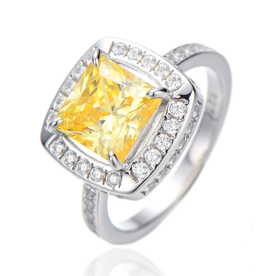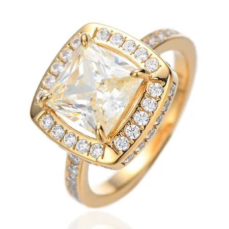 Square Diamond G And Round White Cubic Zircon Silver Ring With Gold Plating