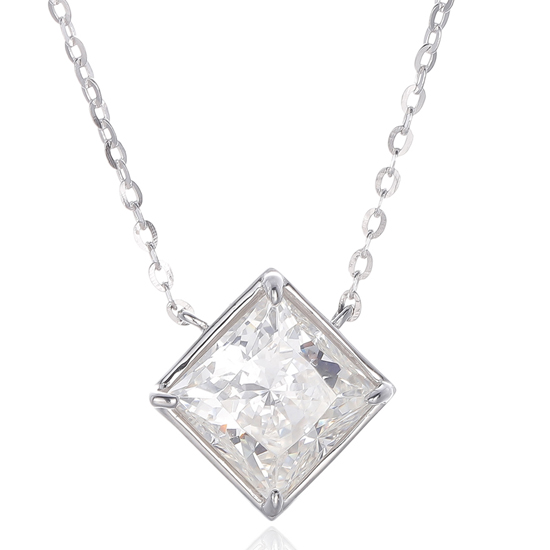 Square Diamond Pink And Round White Cubic Zircon Rhodium Silver Necklace