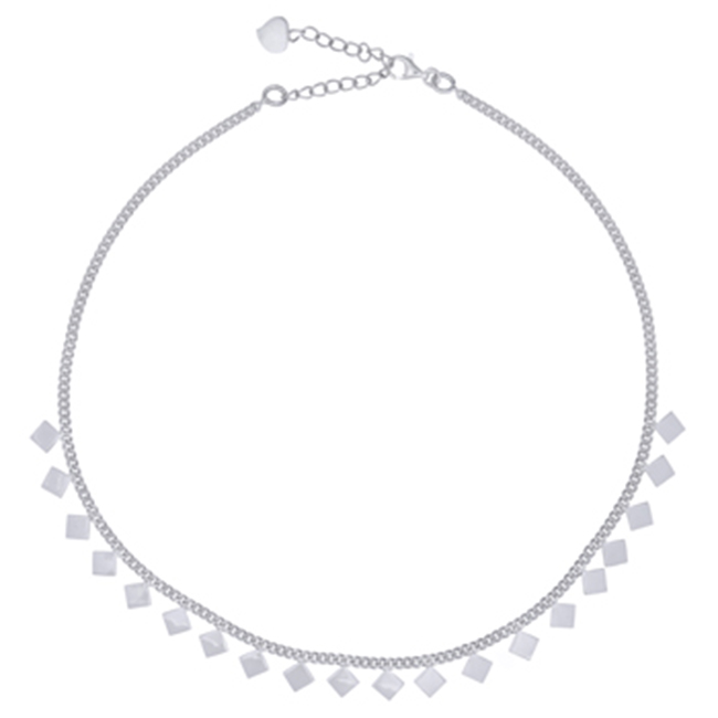 Square Discs Centered In Rhodium Plated Choker Necklace