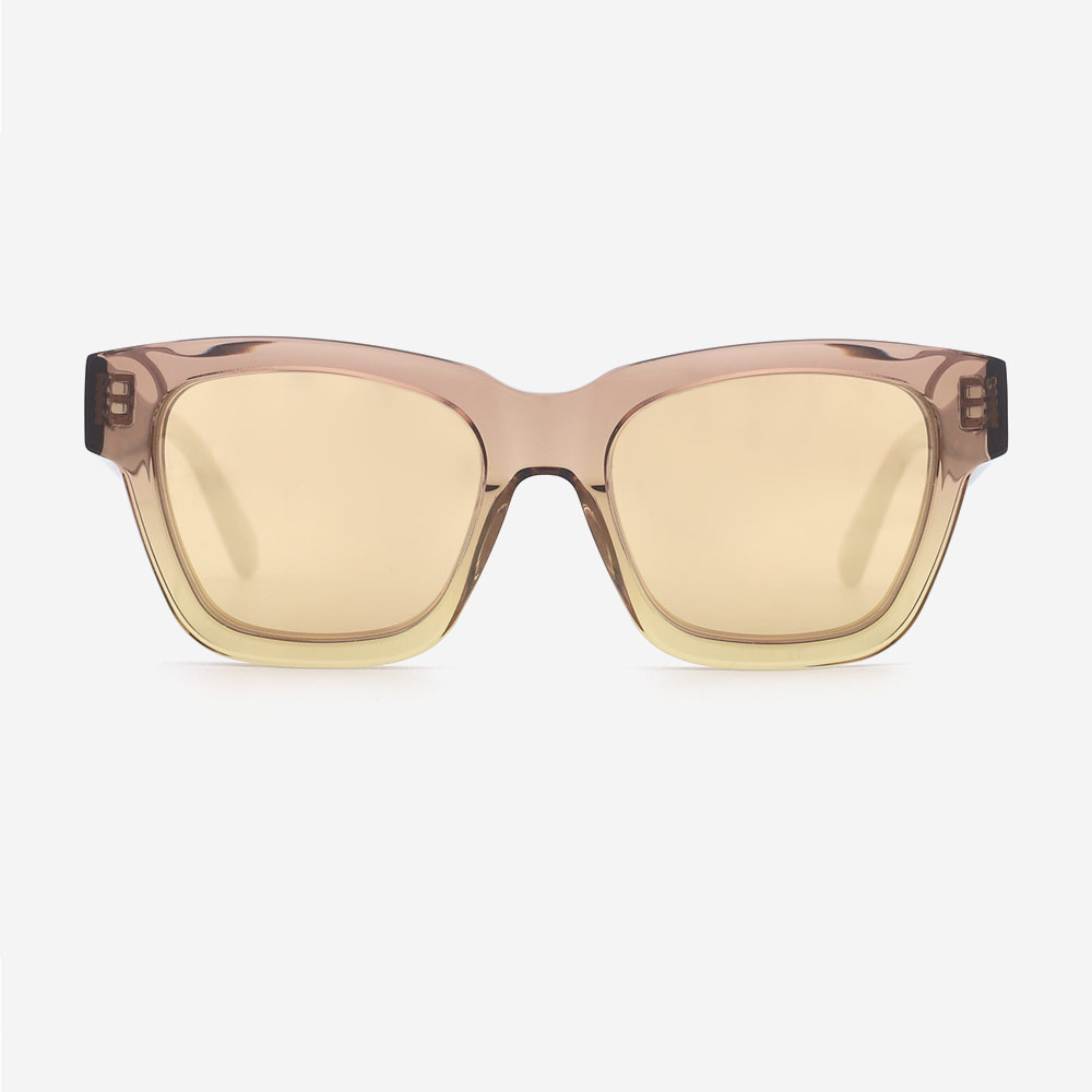 These sunglasses feature a unique square frame design that is simple yet stylish. Its most striking feature is the laminated design of the outer and inner rims, which skillfully connects different materials of acetate through exquisite craftsmanship, showing a unique visual effect and sense of layering.