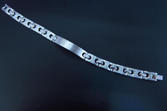 Minimalistic and distinctive, this bracelet is a perfect choice for those looking for something different yet stylish. It shows a square link design with puzzle-like construction in silver-tone finish. To make it more unique, it comes with a name tag which allows you to personalize the bracelet with any engraving.
