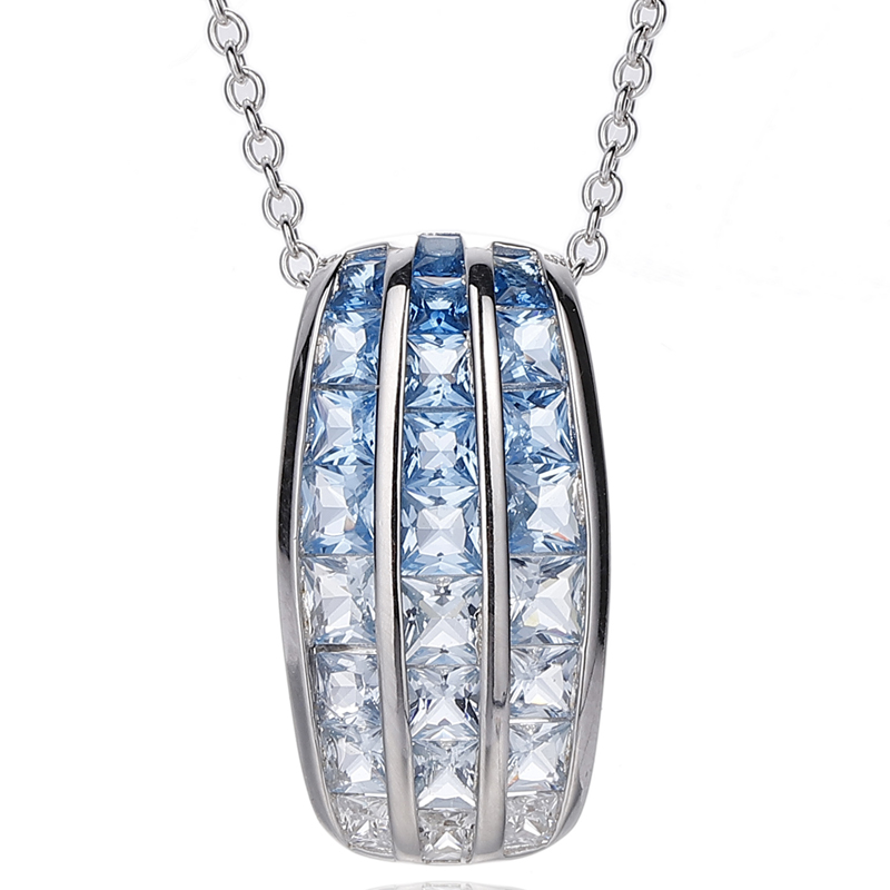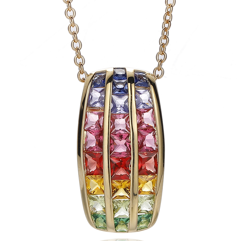 Square Rainbow Cubic Zircon Silver Pendant With Glod Plating