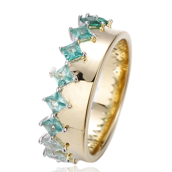 Square Rainbow Cubic Zircon Silver Ring With Gold Plating