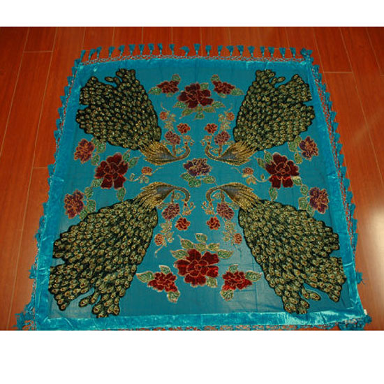 Presented is a square scarf made with silk burnout velvet and rayon. The peacock patterns and the red floral details give this scarf an exotic touch of style. The square scarf can be worn in different styles to suit your daily mood.