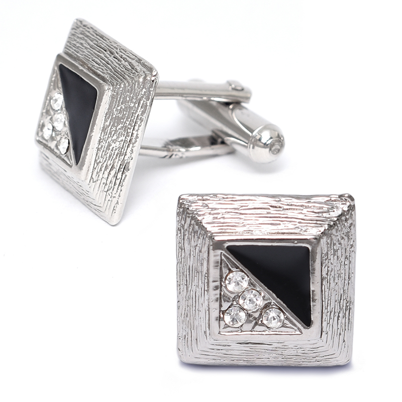 Square Shape with Crystal & Black Epoxy Color Cufflinks