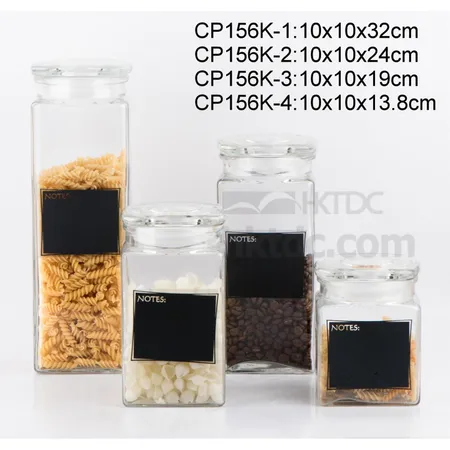 Square glass storage jar with square glass lid with chalkboard printing