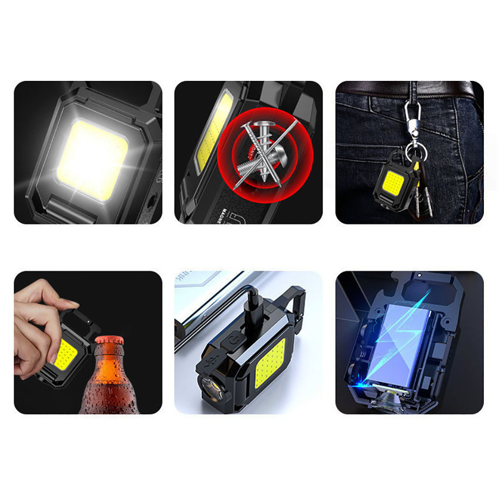 Square-shaped Dual-sided COB Multi-functional Carabiner Light with LED Center Light includes the following features :