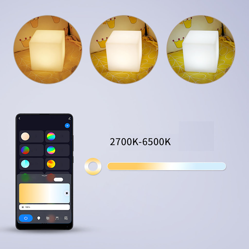 Built-in 800 mAh rechargeable lithium battery, lamp is cordless and rechargeable, taking 3 hours to be fully charged, the cube night light can last 8 hours, depending on the brightness level