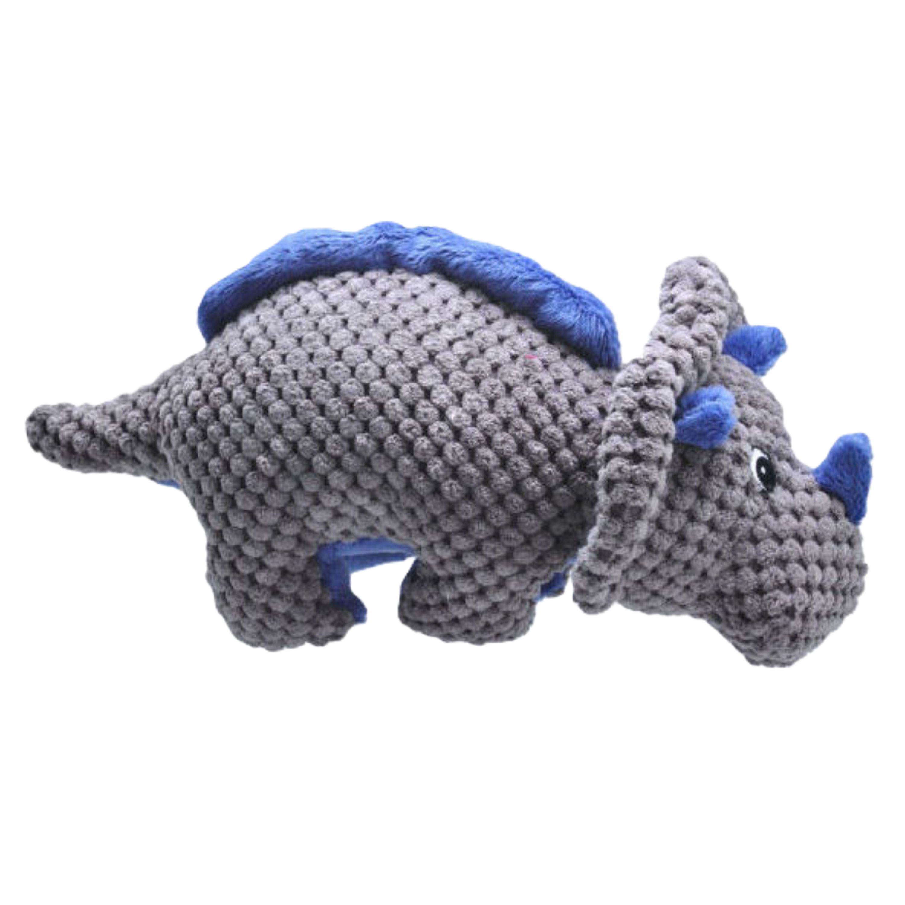 TriceraTwist Duo – Knitted Dinosaur Dog Toys for Snuggles & Play