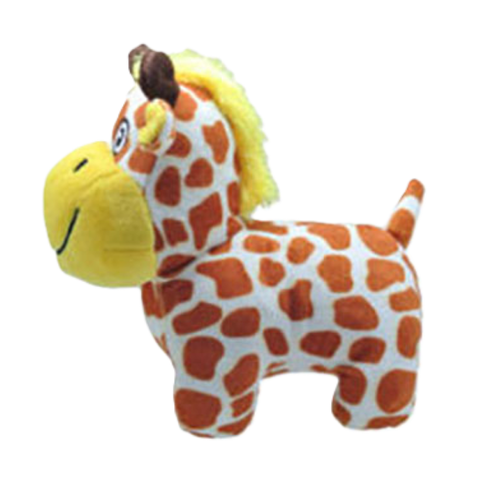 Let your pup stretch into playtime with the Giggly Giraffe! This cheerful giraffe-shaped toy features a soft plush body, classic orange-and-white patchwork, stitched smile, and floppy limbs—perfect for cuddling, gentle chewing, and indoor fun. With its friendly face and safari charm, it’s a wild companion your dog will adore.