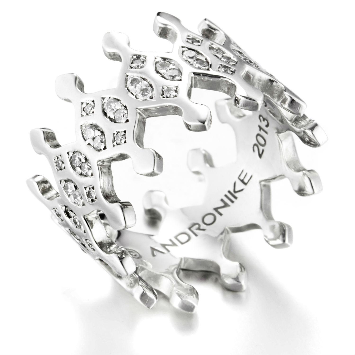 As a result, the ANDRONIKE St. Mark’s ring has become one of the most beloved ring designs in the collection. Detailed and made with high craftsmanship, this ring brings beauty and elegance to any wear’s hands. The ring shown is made with 925 sterling silver and white melee diamonds. Additionally, the St. Mark’s ring also comes in 925 sterling silver, aged 925 sterling silver, 14k yellow, white and rose gold, 18k yellow, white and rose gold.