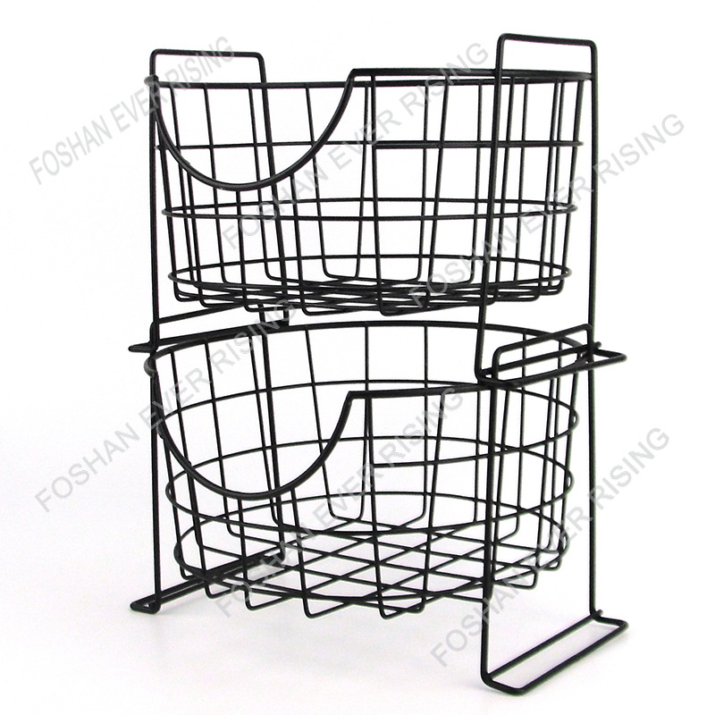 Sturdy & Durable:strong,large and heavy duty,includes mounting hardware.Can be stacked and hung .They stack securely and nicely on top of each other and enough room to grab what you need,easy to load and easy access with the lower opening in front,each wire baskets can hold potatoes,onions,bread,fruits,veggies,squash,kitchen accessories,etc, perfect solutions for counter top or fruit baskets